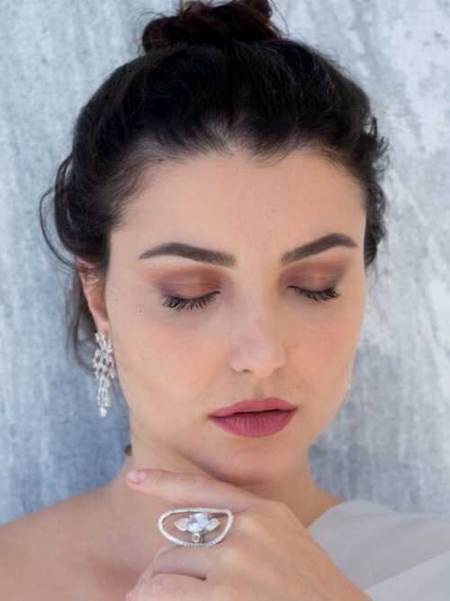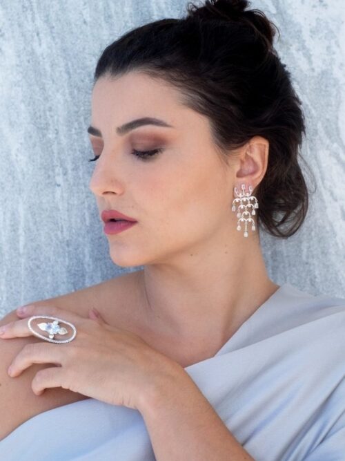 Brinco em forma de candelabro em prata 925 com 40 pedras de zircônia cravadas na prata.