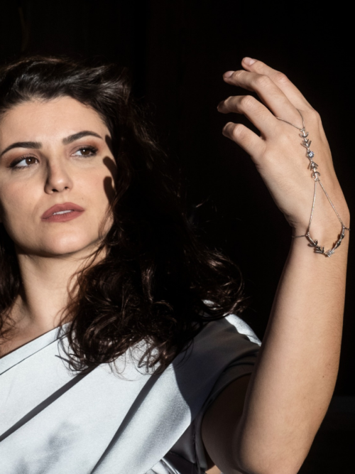 Pulseira de dedo com 2 pedras de zircônia toda trabalhada na prata, um encanto com muita feminilidade.